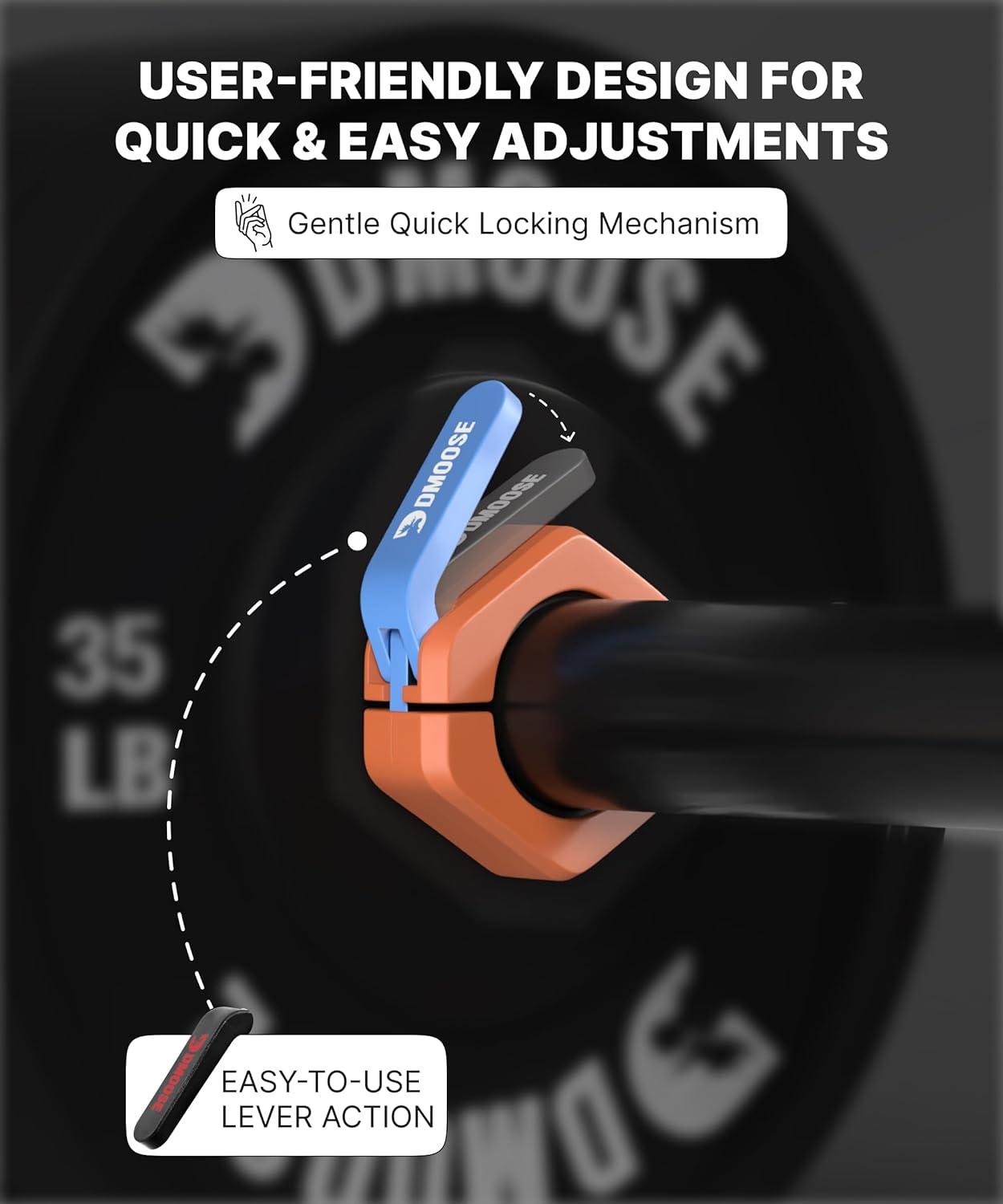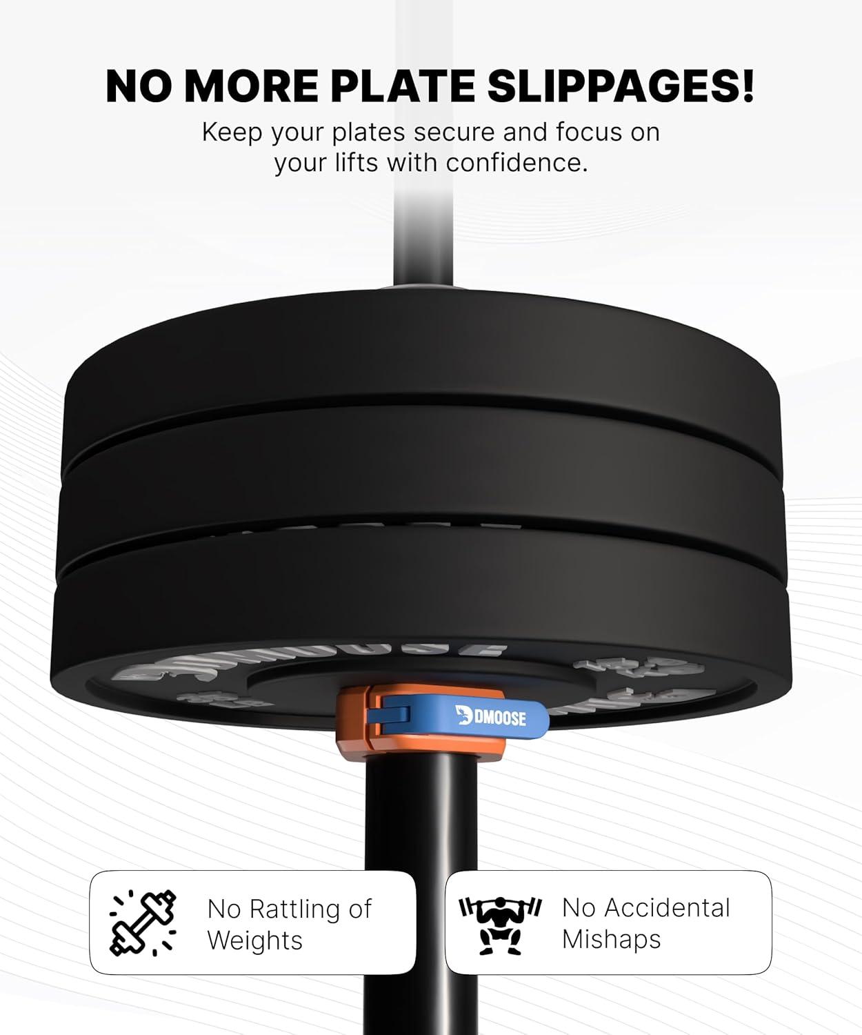 SECURE HOLD FOR RELIABLE PERFORMANCE: The advanced locking mechanism of weight bar clamps guarantees a rock-solid hold ensuring that plates stay firmly in place and won’t shift or slip during lifts. Train with confidence knowing your weights are securely locked in place.