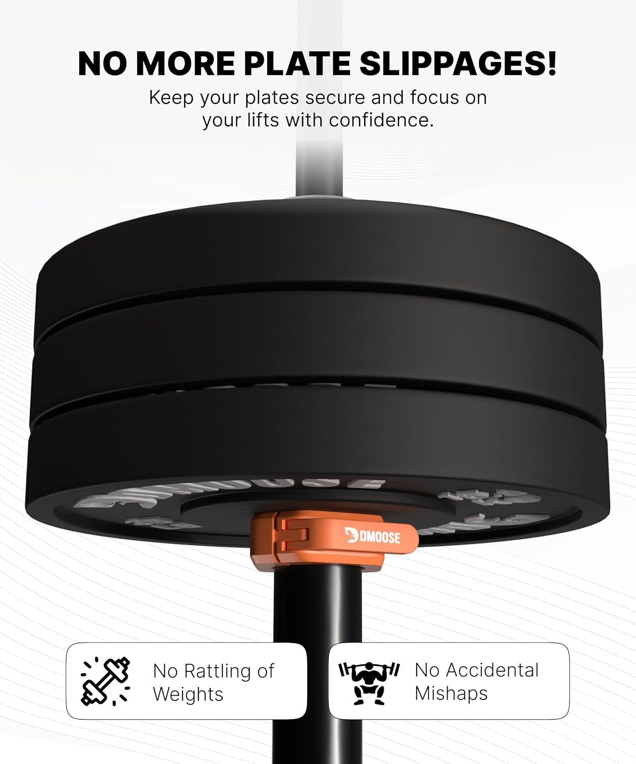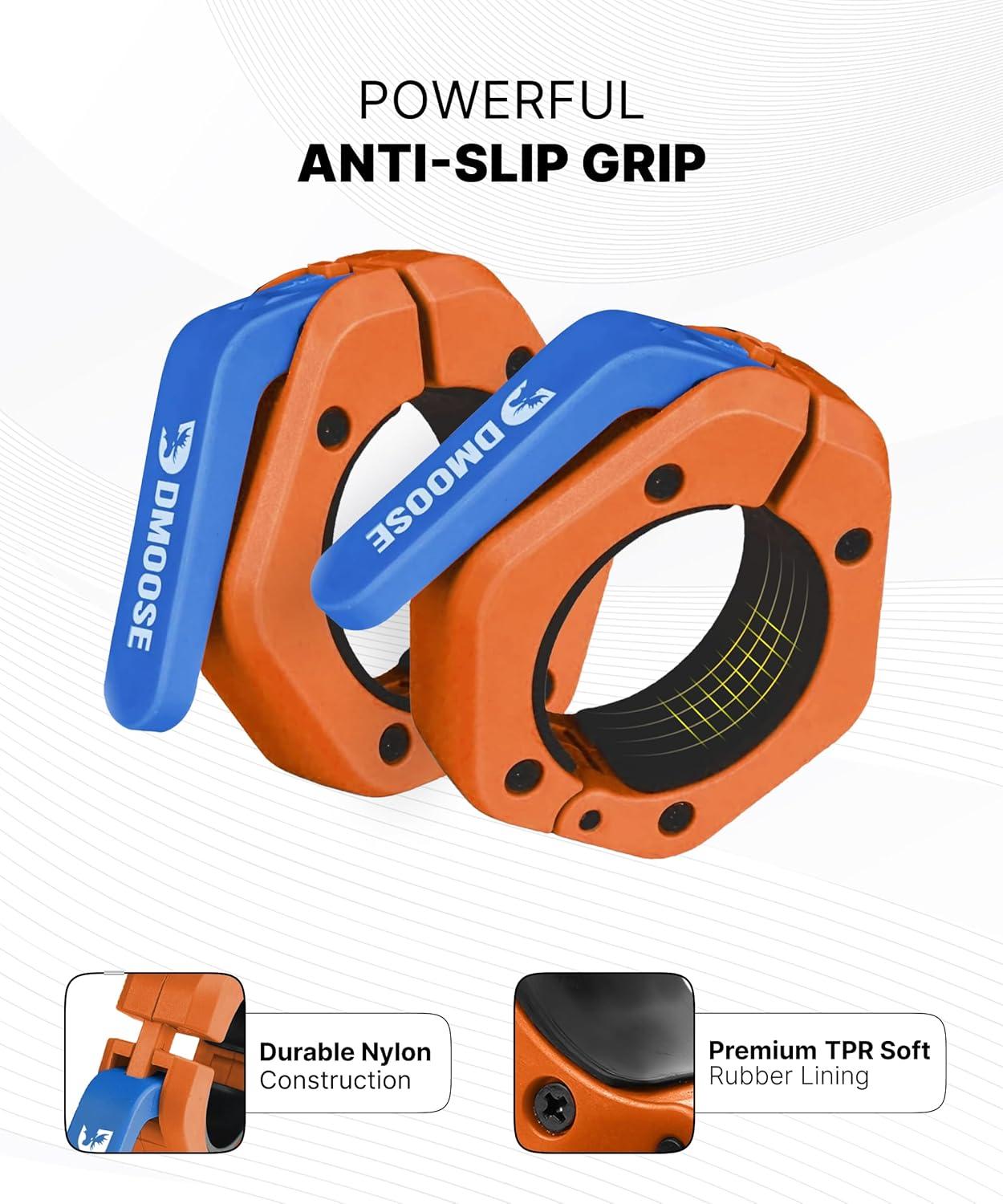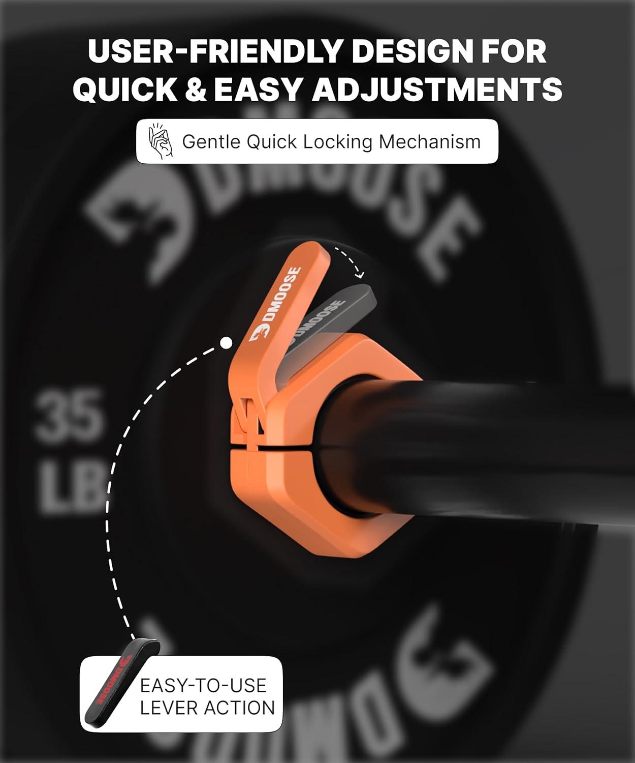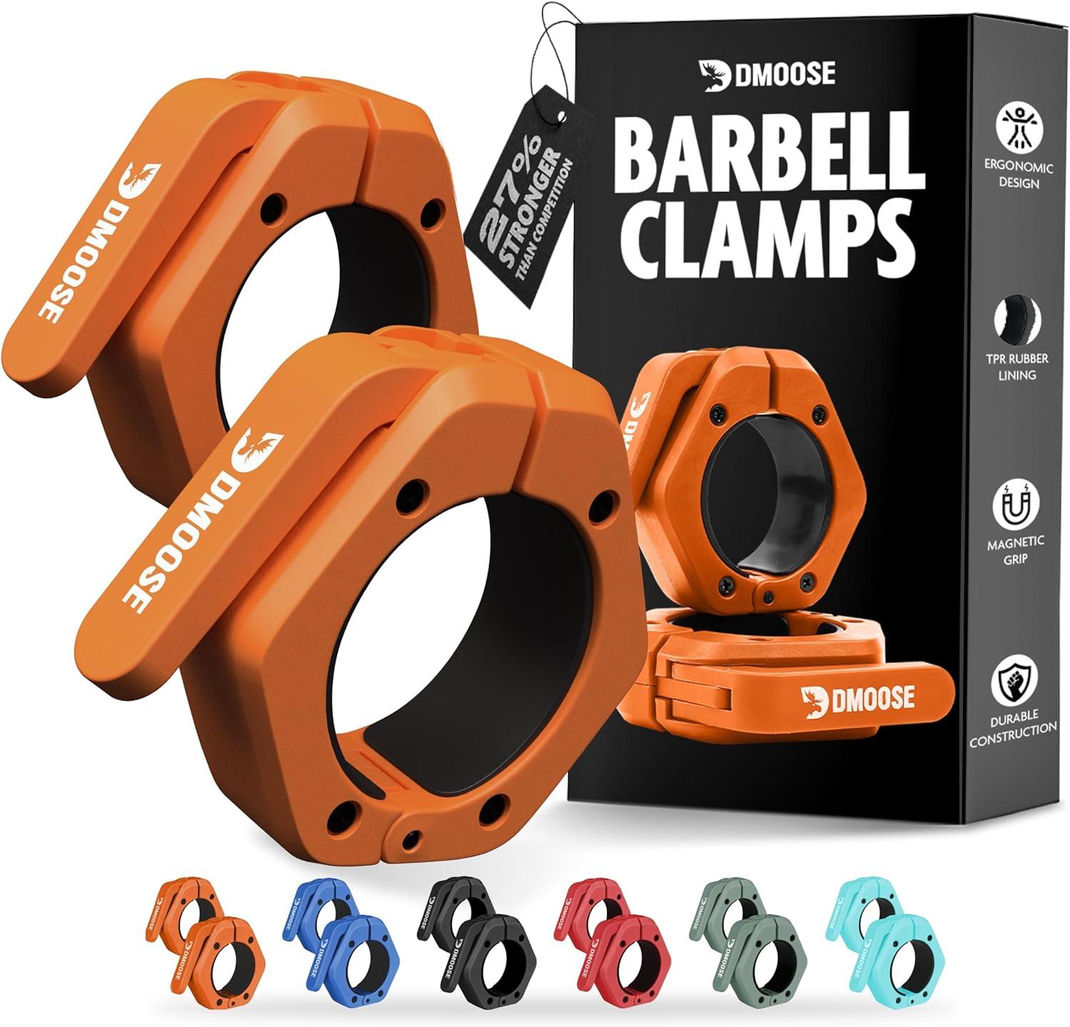 DMoose Fitness Barbell Clips 2 Inch (Pair) – Quick Release Olympic Barbell Clamps & Collars with Anti Slip TPR Grip for Secure Weightlifting and Powerlifting – Weight Clips for Bars at Home or Gym(Orange)