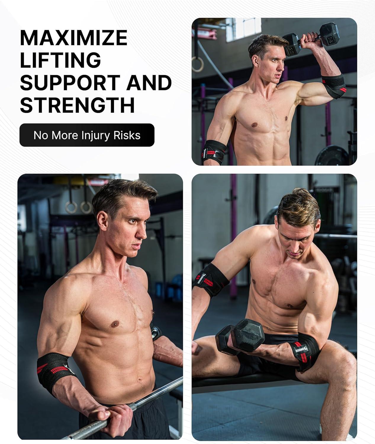 Achieve optimal elbow support and stability during your most challenging lifts with DMoose Elbow Wrap Weightlifting. Designed with a 40” adjustable length, DMoose Weight Lifting Elbow Strap for Men & women offer customizable compression, perfect for heavy bench presses, dumbbell presses, and all chest exercises. Perfect coderas para gym lifting accessories wraps made from a premium blend of cotton and elastic, they provide the perfect balance of durability and flexibility, ensuring long-lasting performance. The adjustable hook & loop closure ensures a secure fit, while the breathable, skin-friendly fabric keeps you sweat-free and comfortable during intense workouts. Whether you’re aiming to improve your lifting performance, reduce elbow & leg strain, or enhance joint stability, DMoose Weight Lifting Elbow Sleeve are your go-to solution for heavy push workouts. DMoose Tennis Elbow Wraps Weightlifting Men provide maximum elbow support during heavy lifts, helping you maintain form and reduce strain on your joints. These 40″ long adjustable Best Elbow Brace Weightlifting & powerlifting gear offer customizable compression to give you the perfect amount of tension and support, allowing you to lift heavier while minimizing the risk of injury. Whether it's bench presses or overhead lifts, they provide the extra support you need.