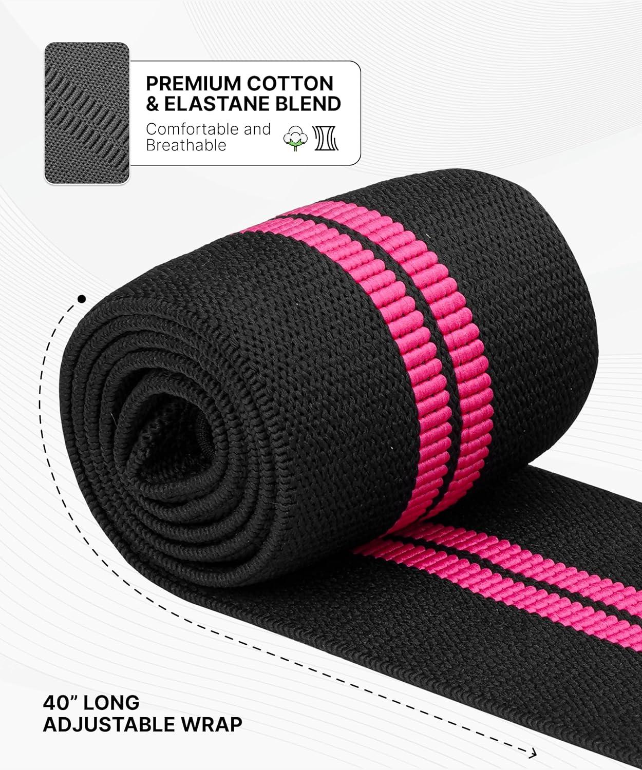 DMoose Fitness Elbow Wraps for Weightlifting (Pair) 40″ Adjustable Brace for Joint Support, Pain Relief & Tendonitis – Elbow Straps for Weight Lifting, Bench Press & Gym Workouts, Band for Men & Women(Pink Stripes)