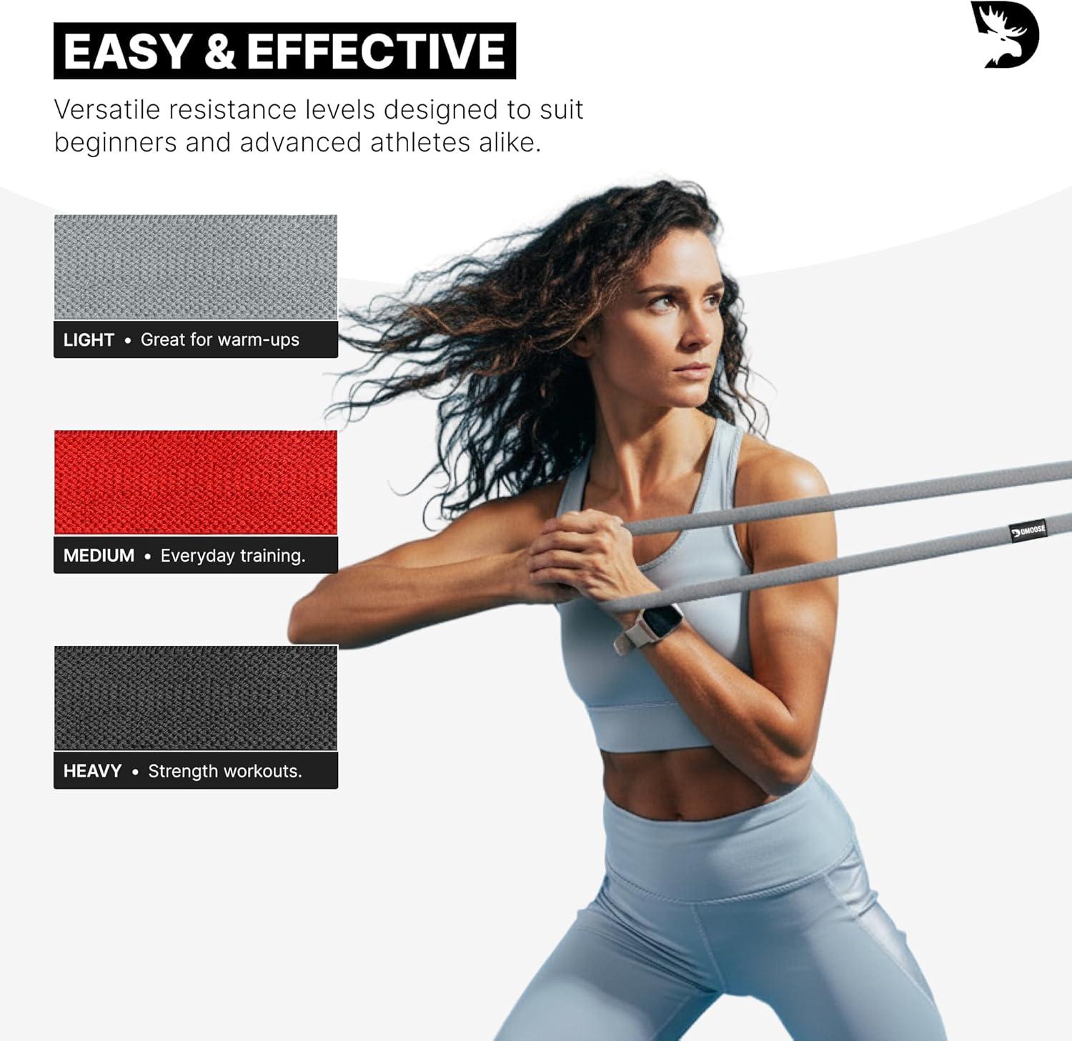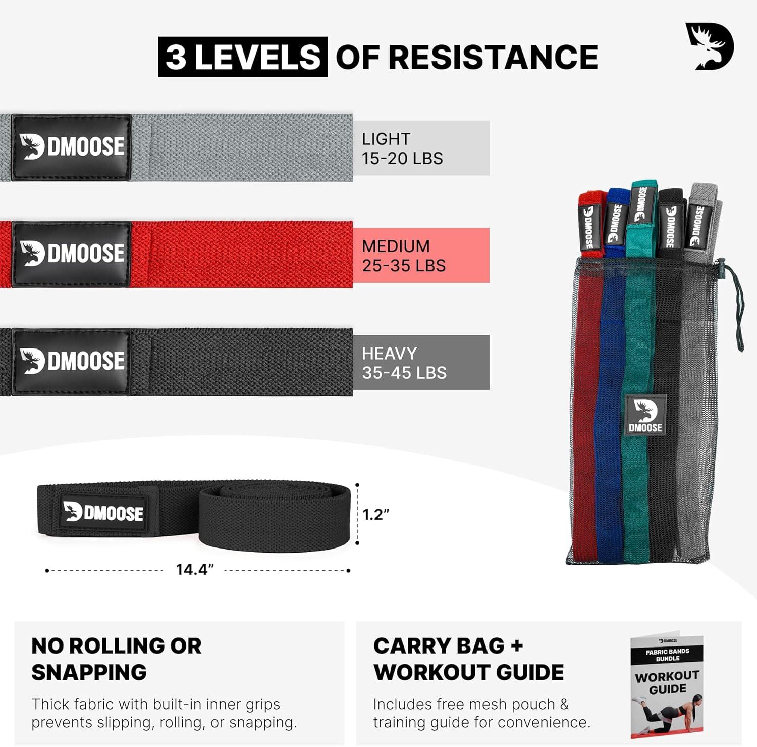 5 RESISTANCE LEVELS: Choose from Light, Medium, Heavy, Extra Heavy & Super Heavy resistance levels as these fabric exercise bands offer a range from 5 to 245 lbs that make them suitable for any workout, including arms, butt, legs, biceps, triceps, chest and back exercises.