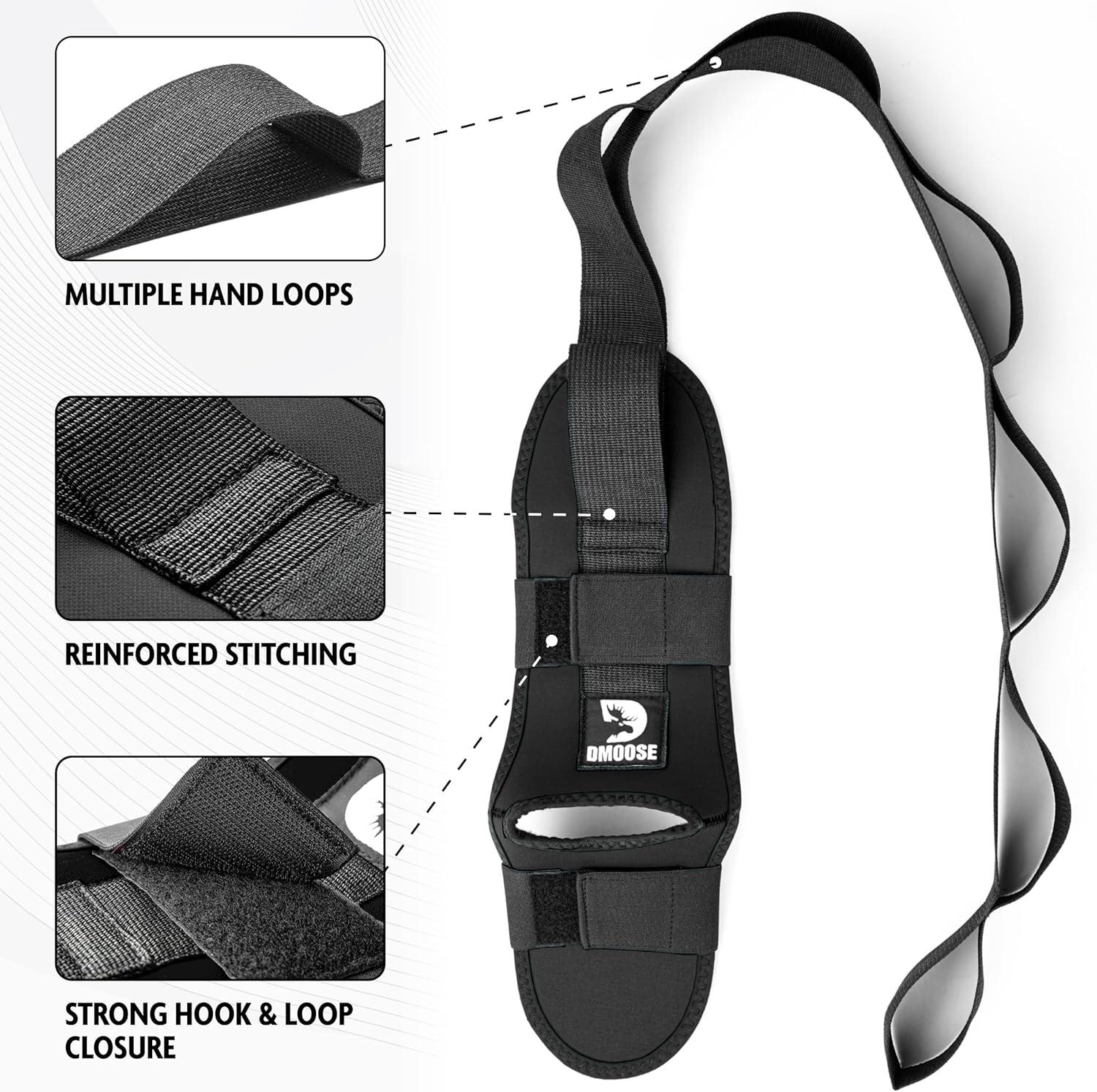 DMoose Fitness Foot & Calf Stretcher with Adjustable Padded Stretching Strap for Plantar Fasciitis, Hamstring, Heel Spurs and Achilles Tendonitis Relief – Yoga Leg Stretch Strap for Flexibility(Black)