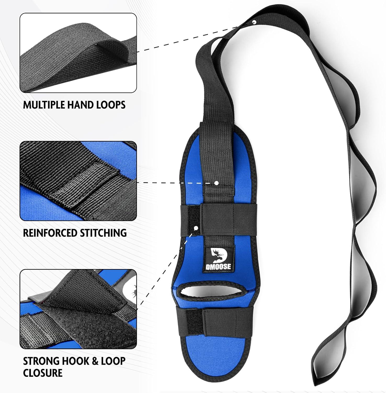 DMoose Fitness Foot & Calf Stretcher with Adjustable Padded Stretching Strap for Plantar Fasciitis, Hamstring, Heel Spurs and Achilles Tendonitis Relief – Yoga Leg Stretch Strap for Flexibility(Blue)