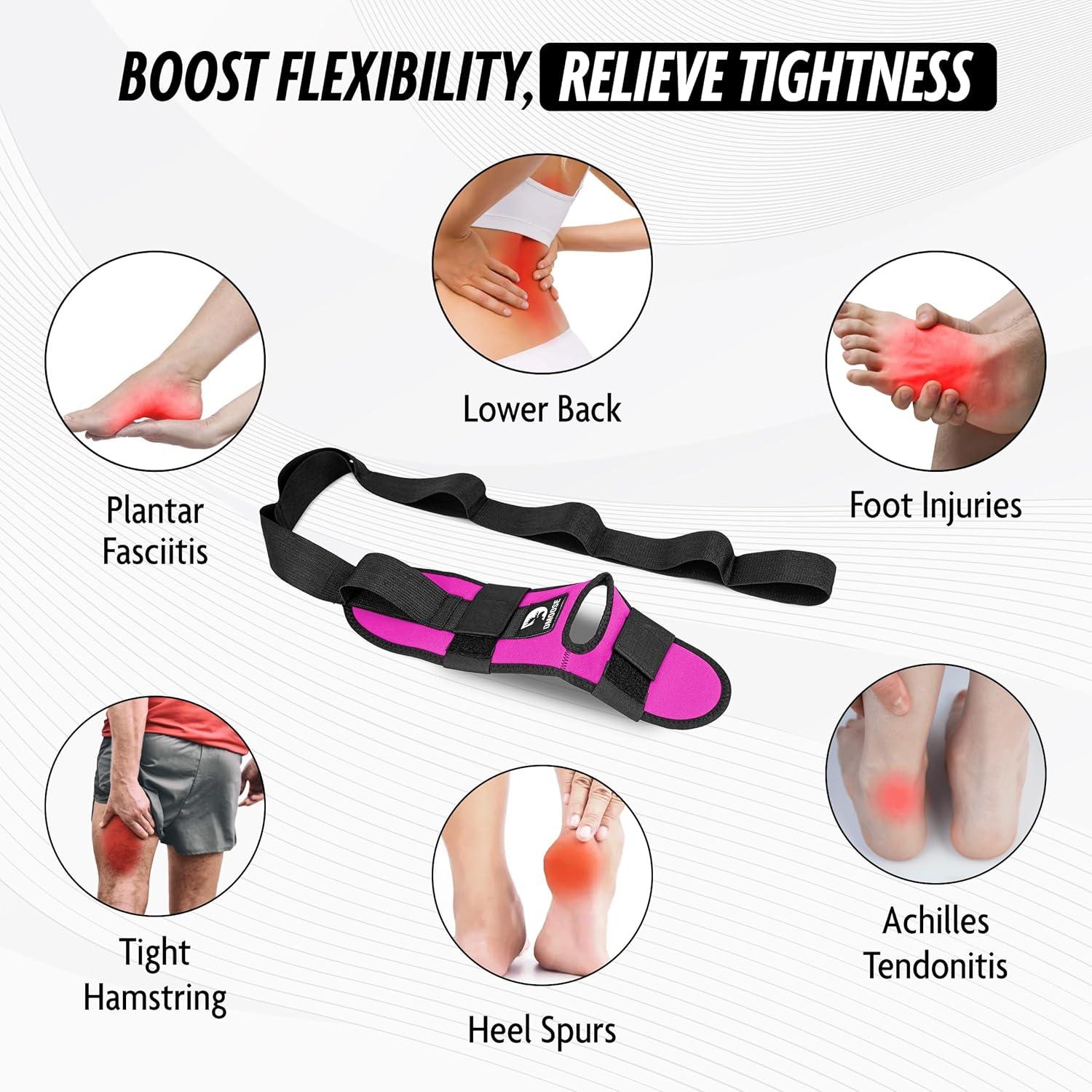 ONE-SIZE FIT DESIGN, PHYSIO-APPROVED: This stretching strap with loops follows natural movement and prevents overstretching. Dual hook & loop straps ensure a secure, adjustable fit for all foot sizes. Physiotherapists recommend that this stretching equipment supports proper form & aids recovery from sciatica, heel spurs & lower back pain.