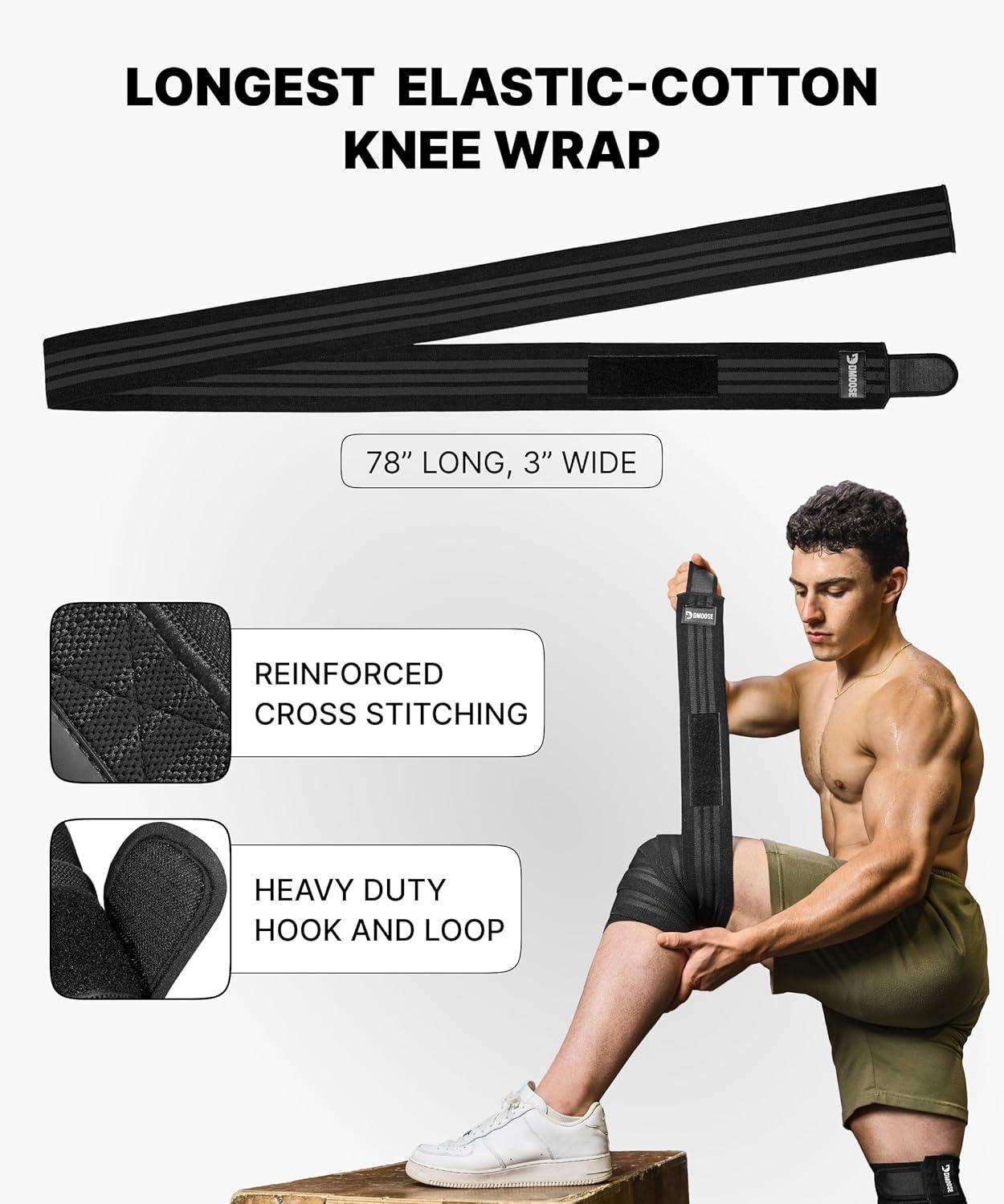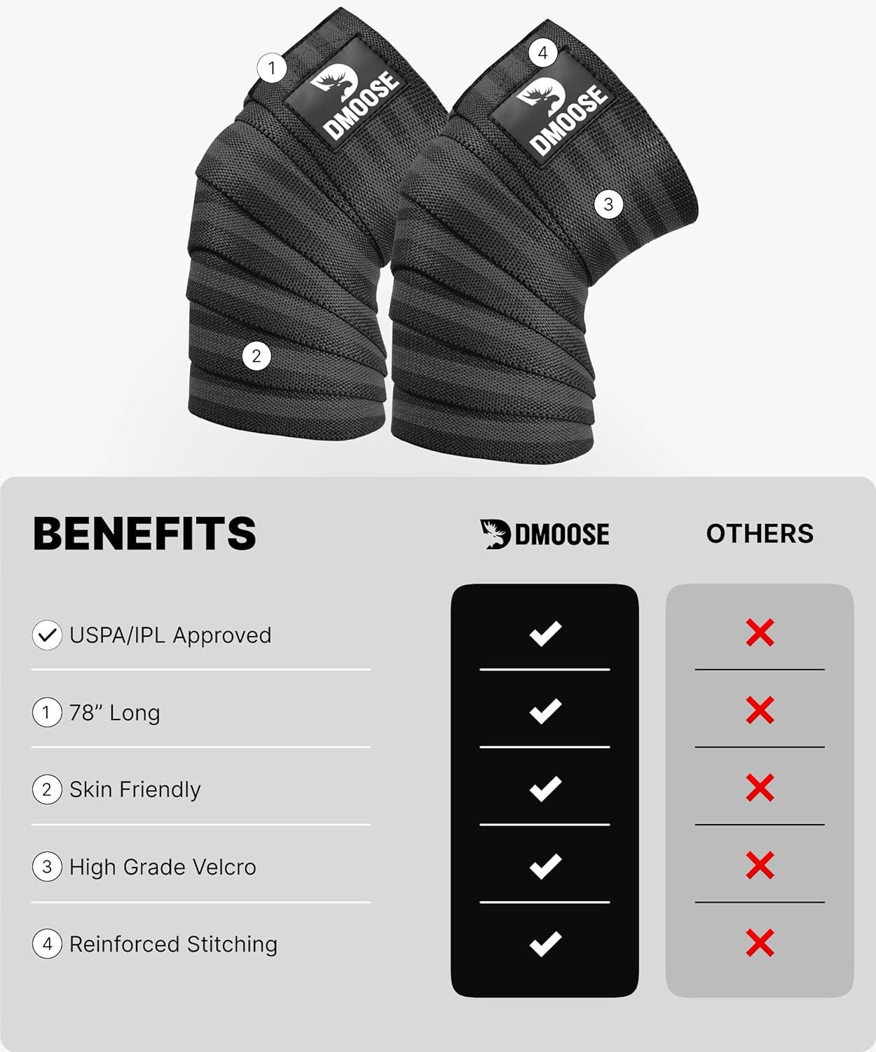 78″ LENGTH FOR OPTIMAL SUPPORT: Extended length allows multiple wraps around the knee, providing customized compression and enhanced stability during heavy lifts. DMoose Knee Sleeves Weightlifting Wraps for Men & Women helps maintain proper form and prevent injuries while staying securely in place.