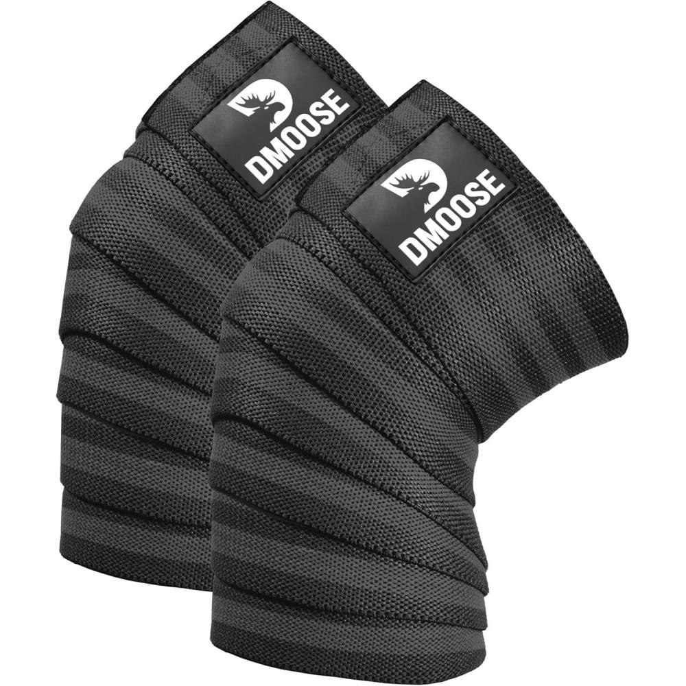 DMoose Fitness Knee Wraps for Weightlifting (Pair) – 78” Gym Brace Straps for Joint Stability & Pain Relief – Perfect for Squats & Working Out – USPA Approved Knee Wrap Supports for Men and Women(Black Stripes (Pair))