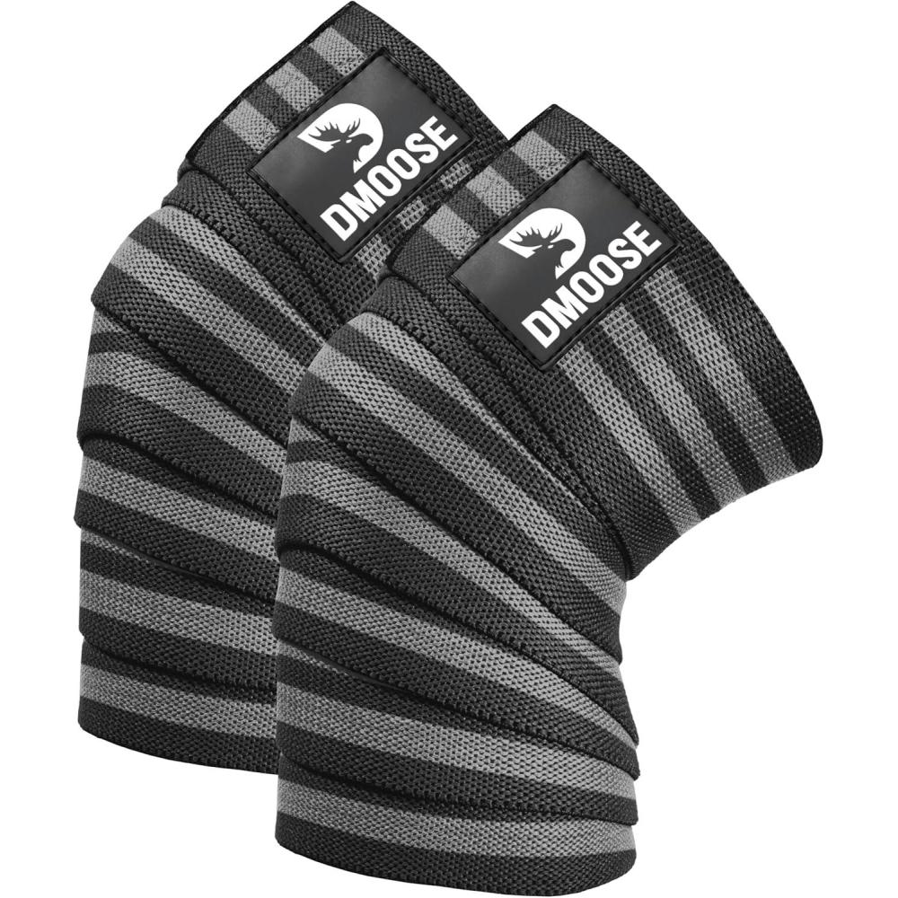 DMoose Fitness Knee Wraps for Weightlifting (Pair) – 78” Gym Brace Straps for Joint Stability & Pain Relief – Perfect for Squats & Working Out – USPA Approved Knee Wrap Supports for Men and Women(Grey Stripes (Pair))