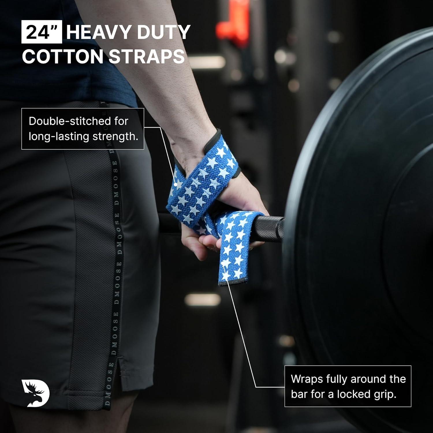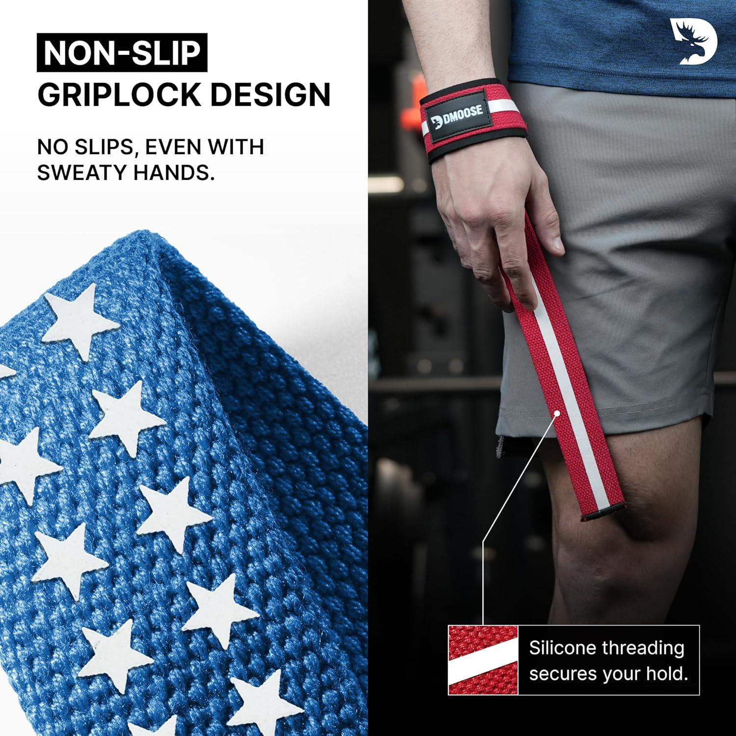 DMoose Fitness Lifting Straps 24″ (Pair) – 5mm Padded Durable Wrist Straps for Weightlifting & Powerlifting – Cotton Lifting Strap with Silicone Grip for Men & Women – Deadlift Strap for Gym Workout(American)