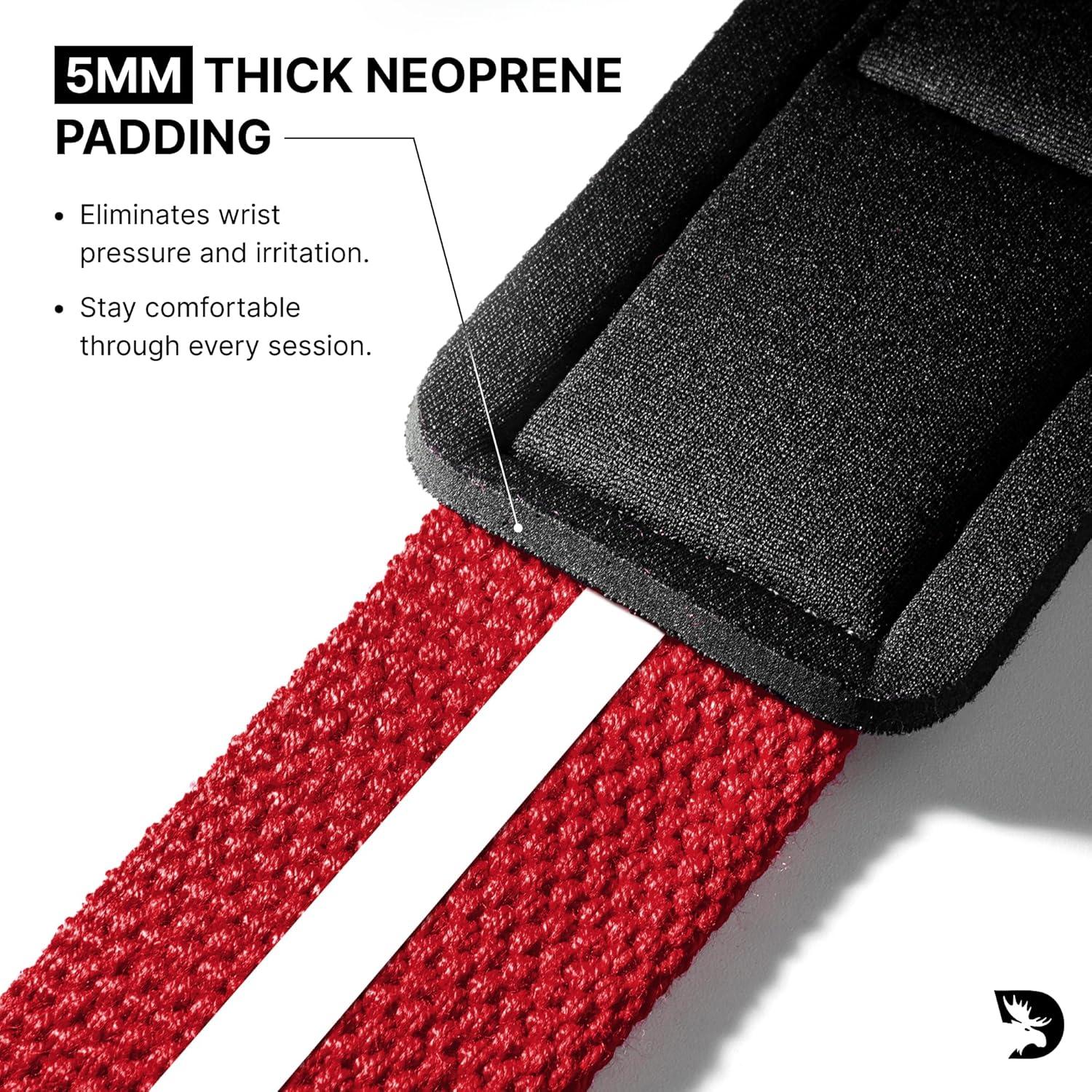 WRIST PADDED STRAPS: DMoose Lifting Straps Gym features 5mm neoprene padding to protect your wrists during heavy lifts, reducing pain and irritation. Lift longer and harder with padded straps that keep you focused on your workouts.
