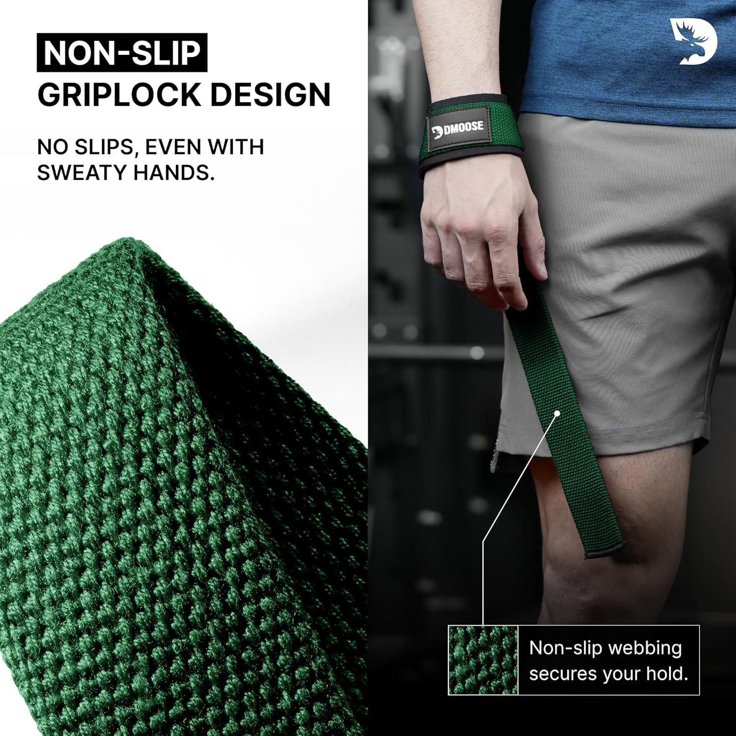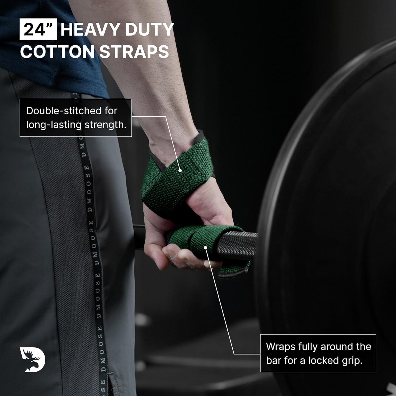DMoose Fitness Lifting Straps 24″ (Pair) – 5mm Padded Durable Wrist Straps for Weightlifting & Powerlifting – Cotton Lifting Strap with Silicone Grip for Men & Women – Deadlift Strap for Gym Workout(Dark Green)