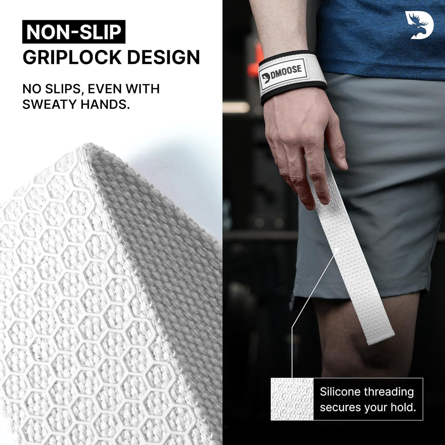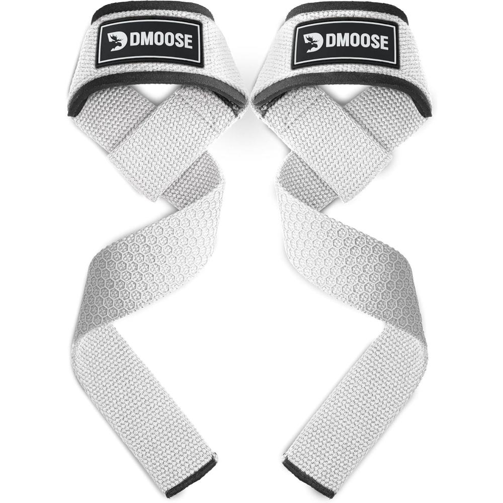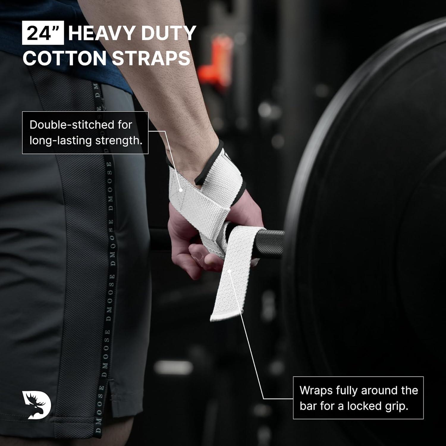 DMoose Fitness Lifting Straps 24″ (Pair) – 5mm Padded Durable Wrist Straps for Weightlifting & Powerlifting – Cotton Lifting Strap with Silicone Grip for Men & Women – Deadlift Strap for Gym Workout(White Silicone)