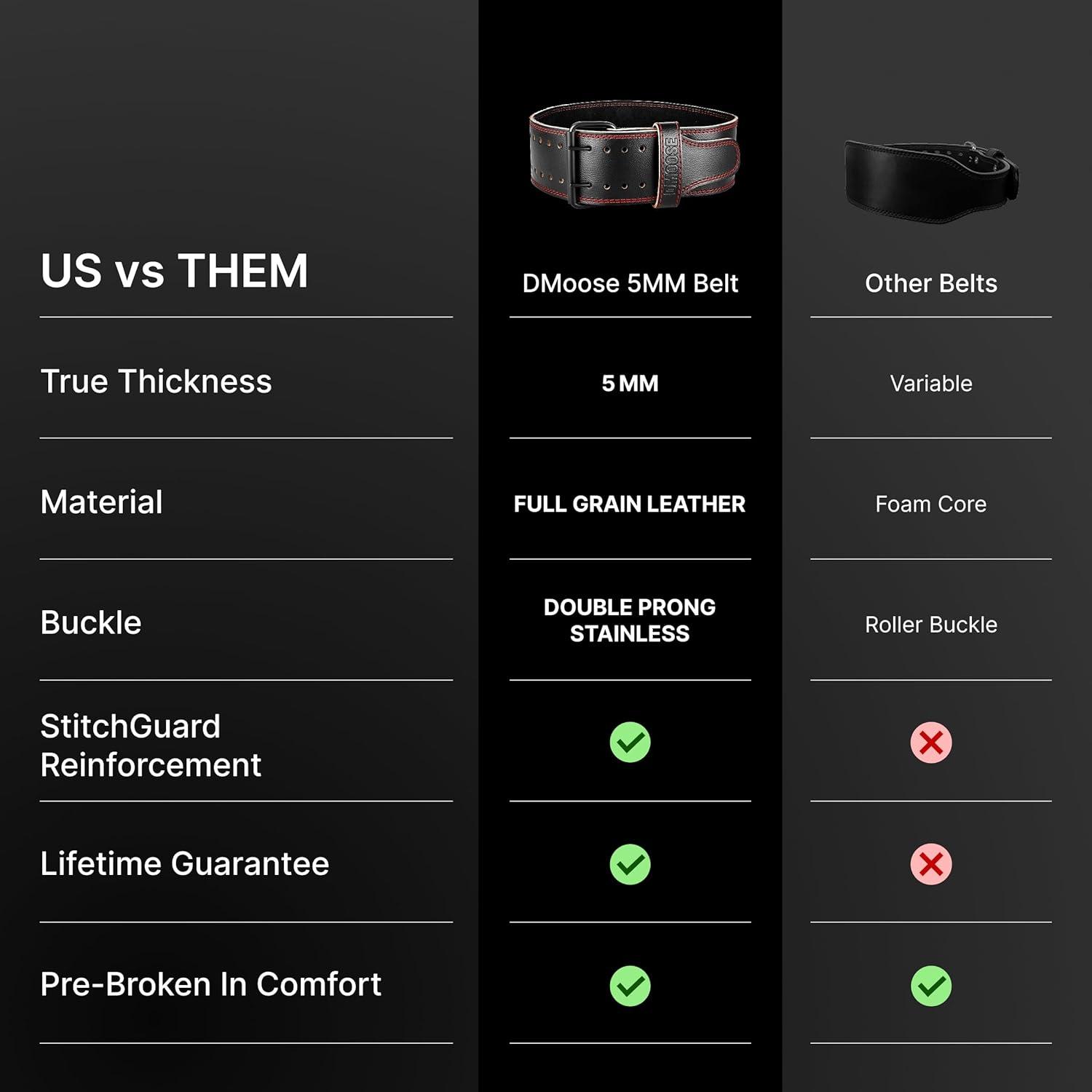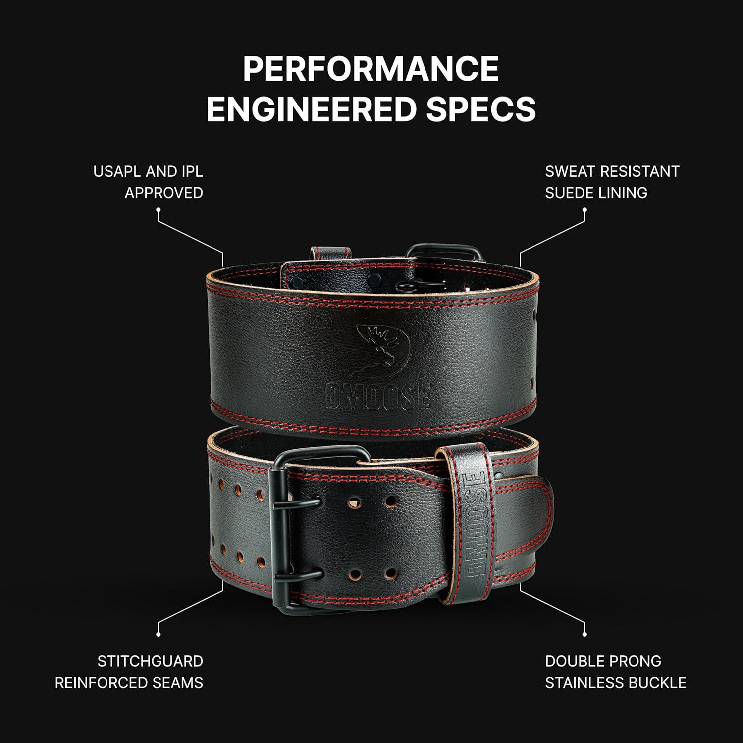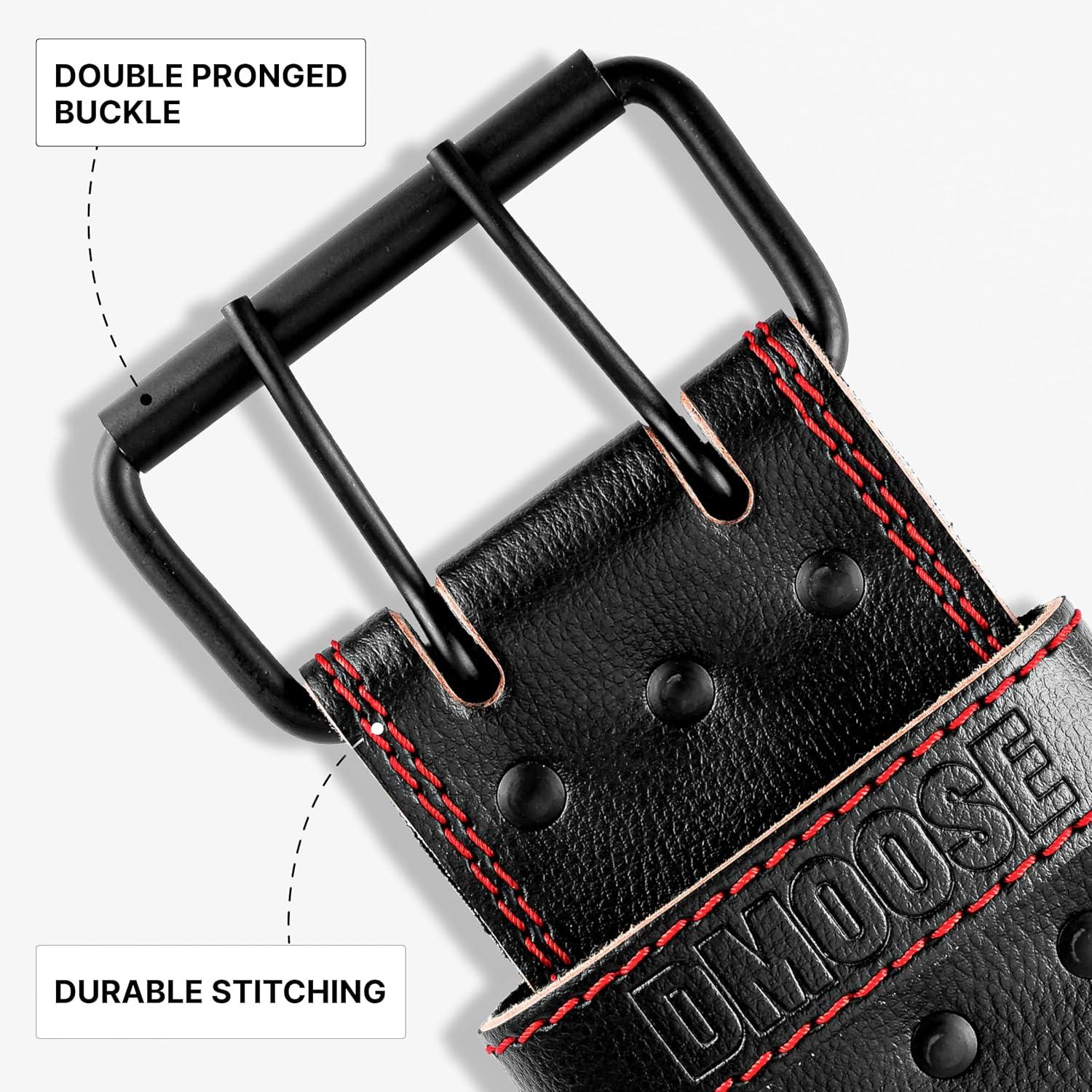 DMoose Fitness Weight Lifting Belt for Lower Back Support – 5mm Thick Genuine Leather Gym Belt for Squats, Deadlifts & Powerlifting – Double Prong Buckle with 10 Holes Adjustability for Men & Women(Black – Red)