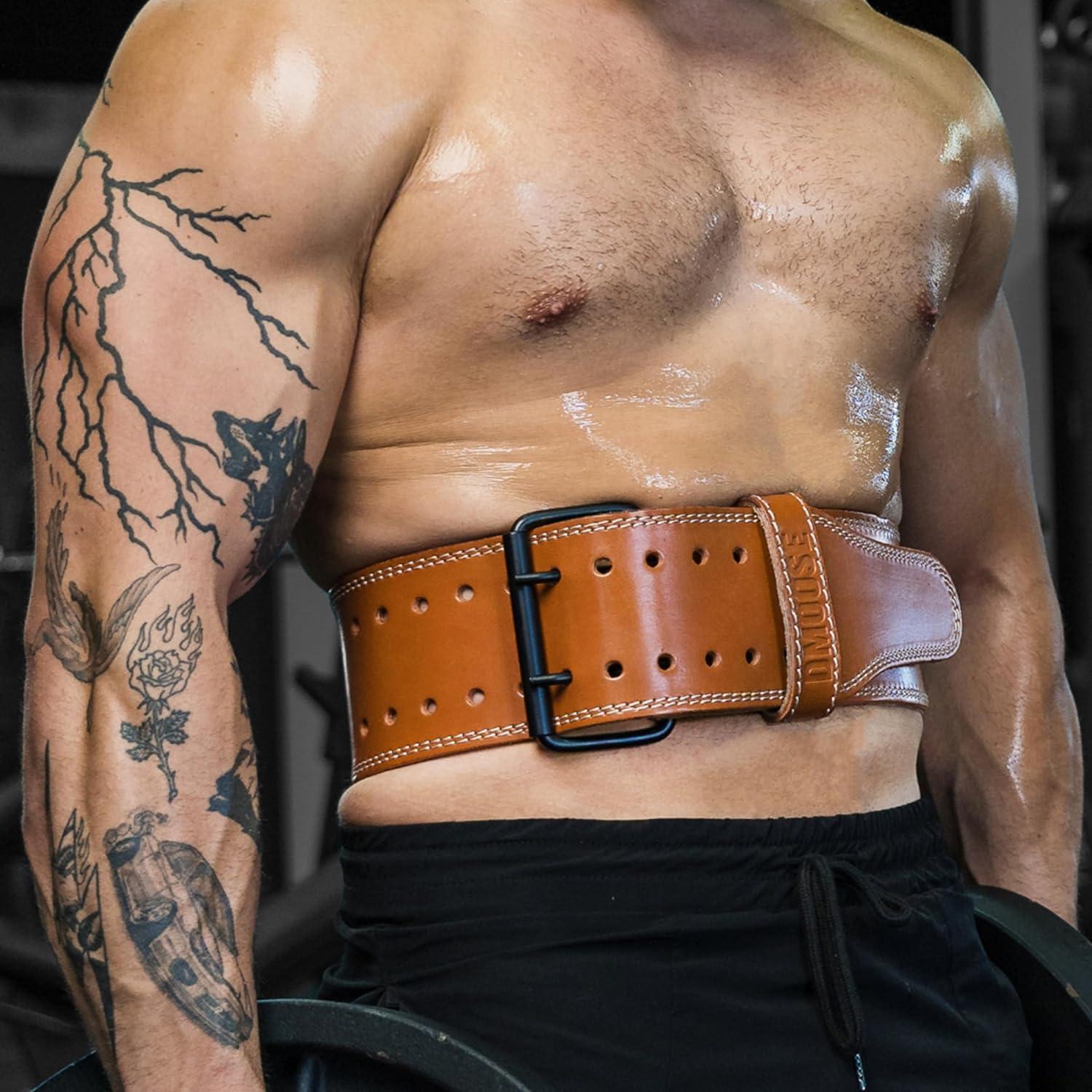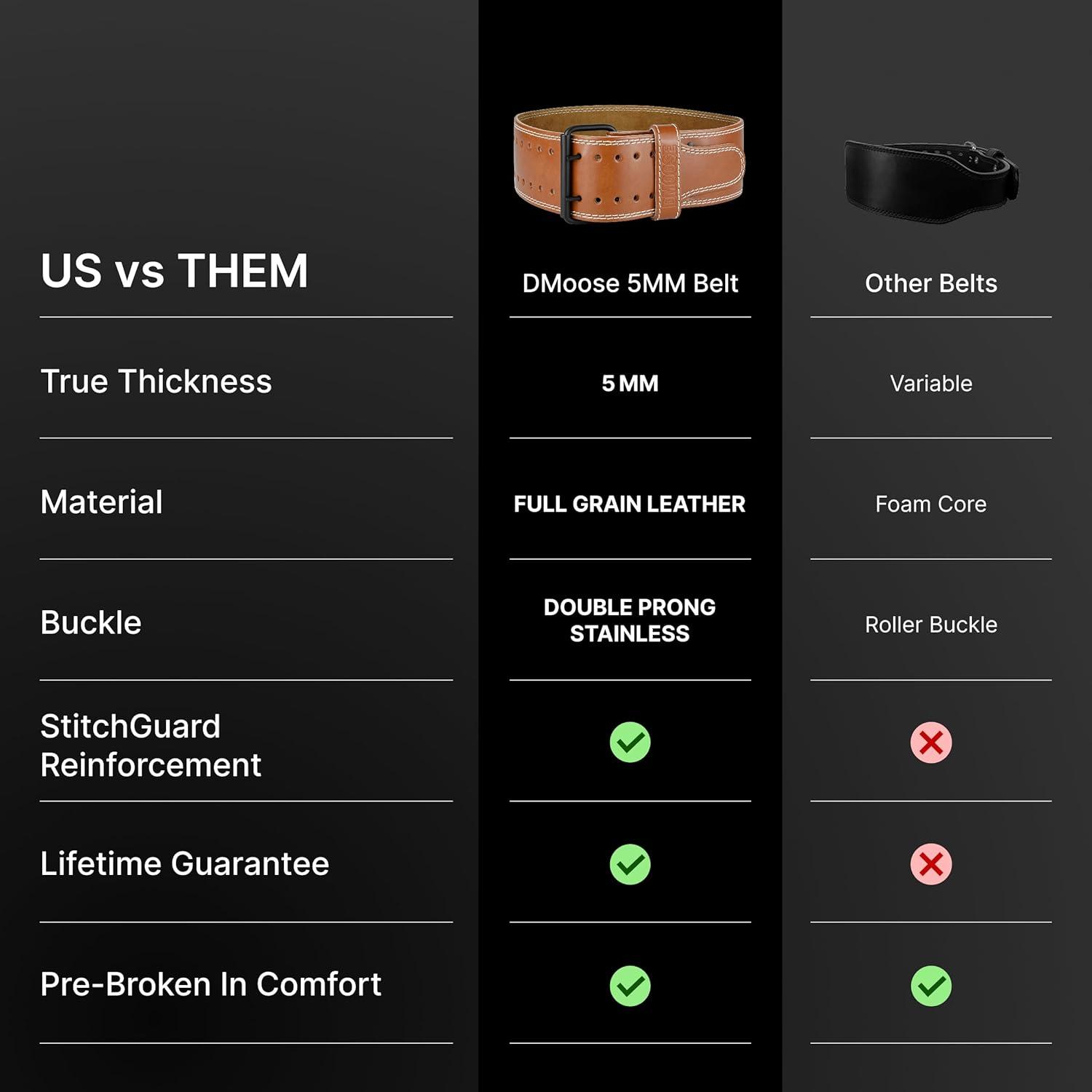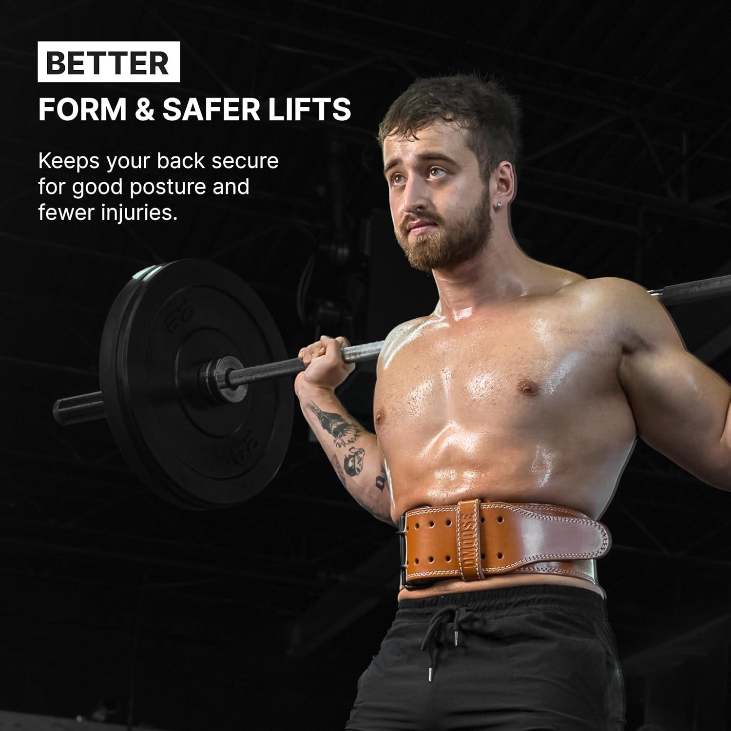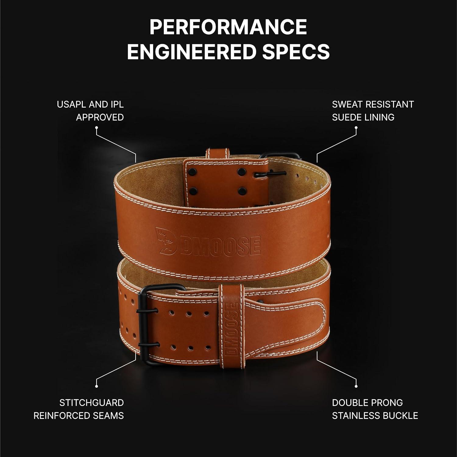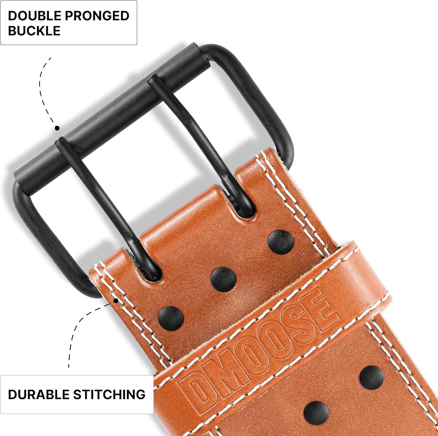 DMoose Fitness Weight Lifting Belt for Lower Back Support – 5mm Thick Genuine Leather Gym Belt for Squats, Deadlifts & Powerlifting – Double Prong Buckle with 10 Holes Adjustability for Men & Women(Brown)