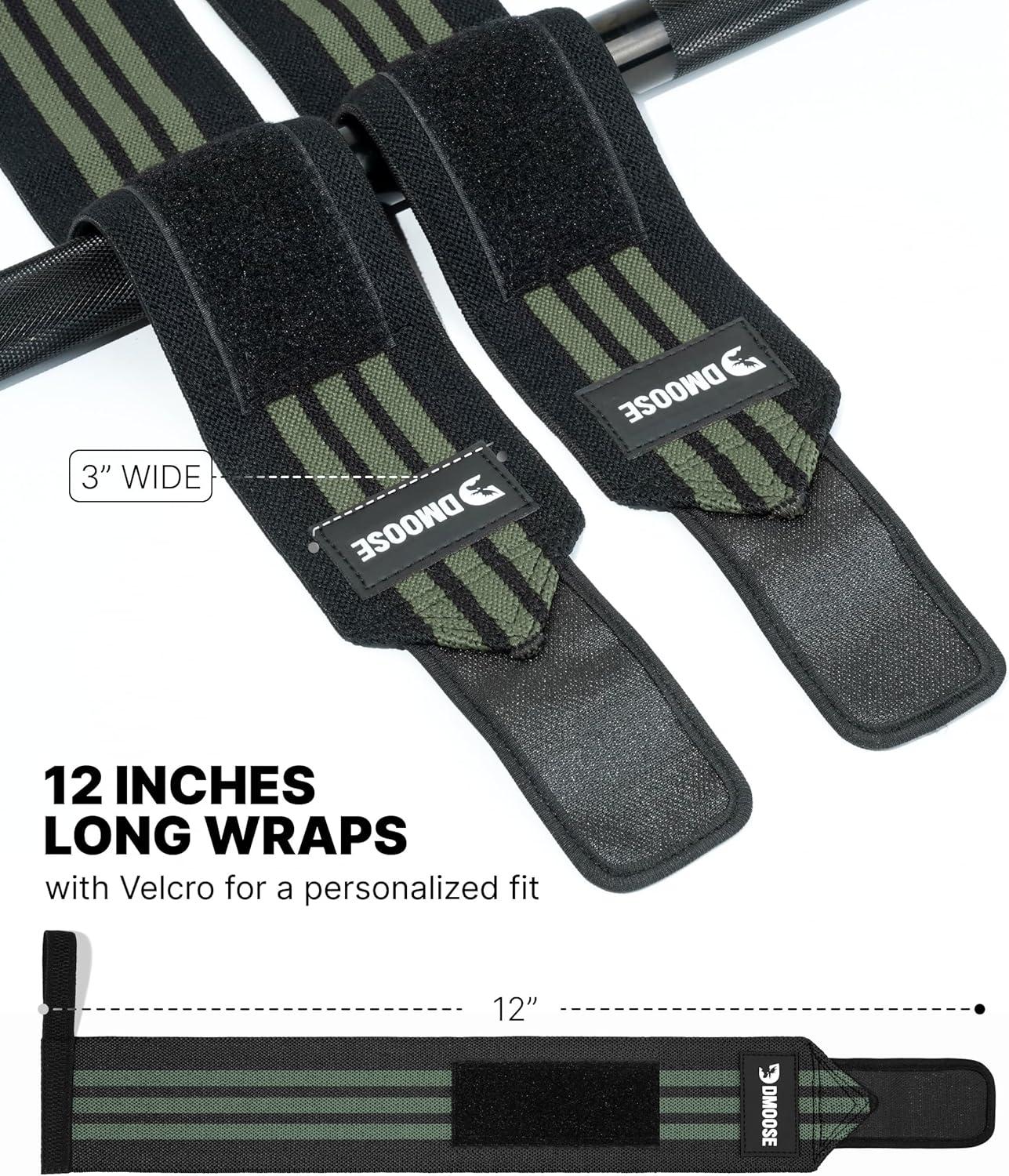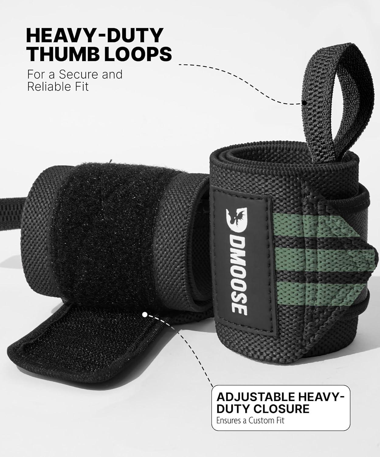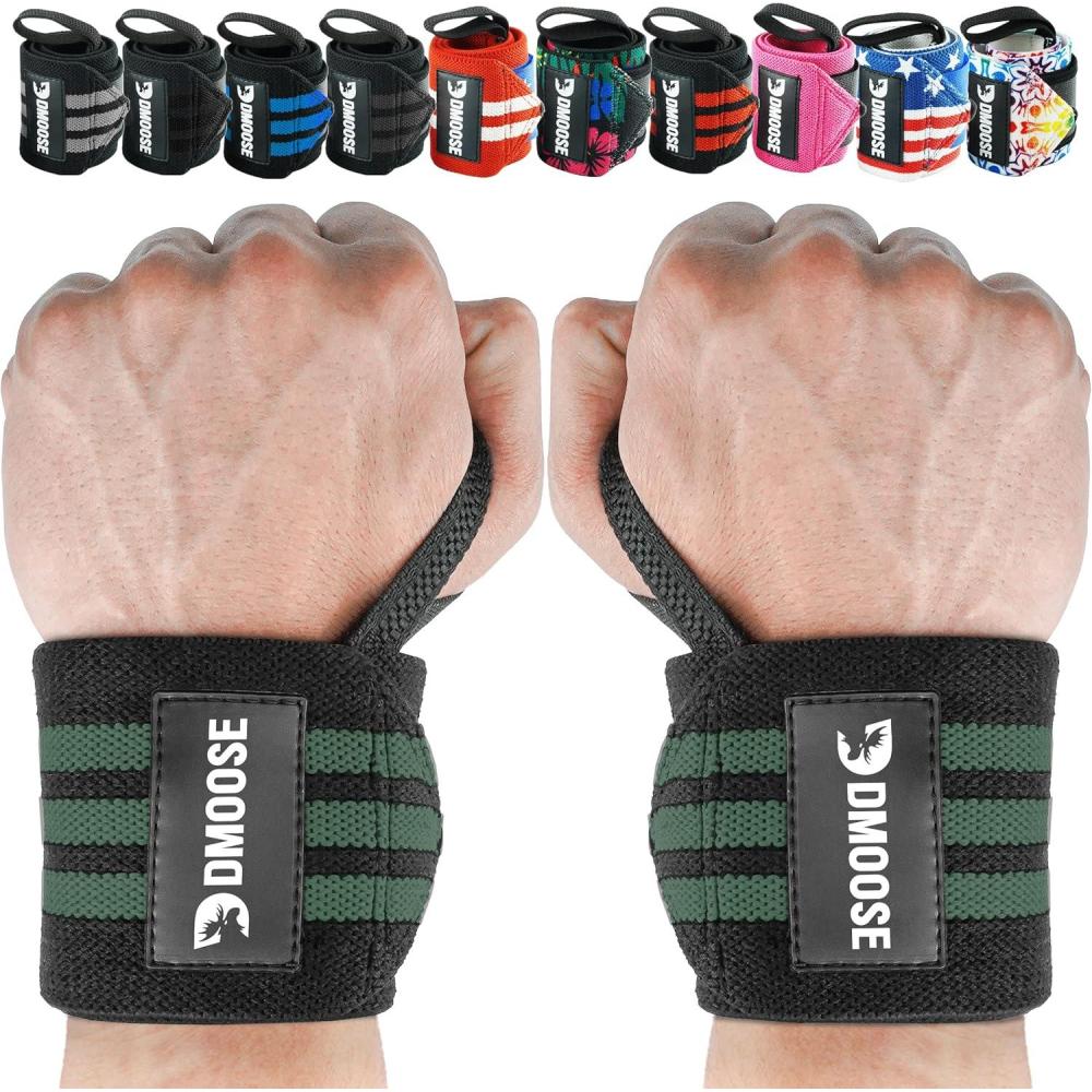 DMoose Fitness Wrist Wraps for Weightlifting 18″ – Heavy Duty Gym Wrap with Hand Thumb Loop for Support & Pain Relief, USPA Approved Powerlifting, Weight Lifting Wrist Straps for Men & Women Work Out(Dark Green Stripes)