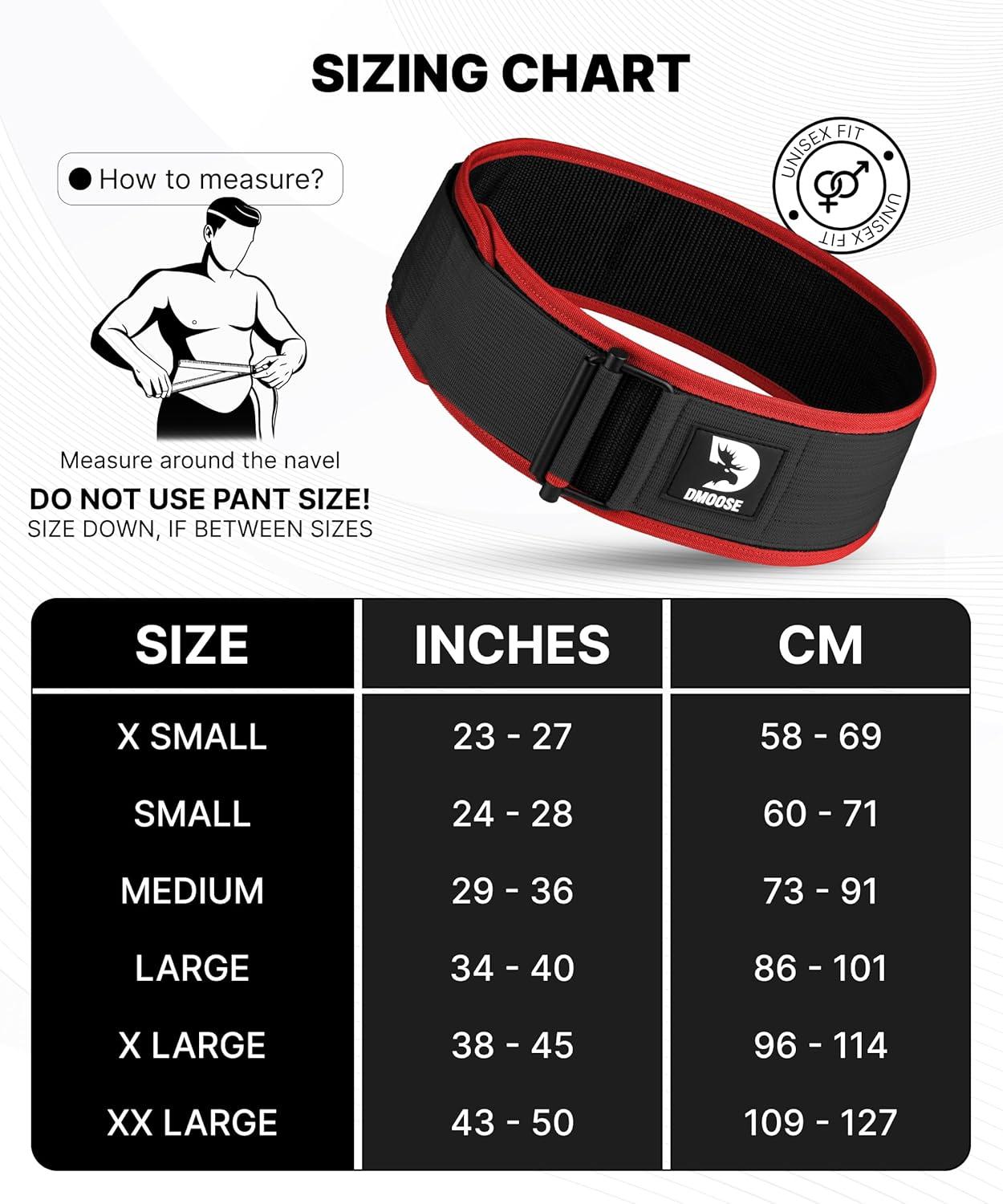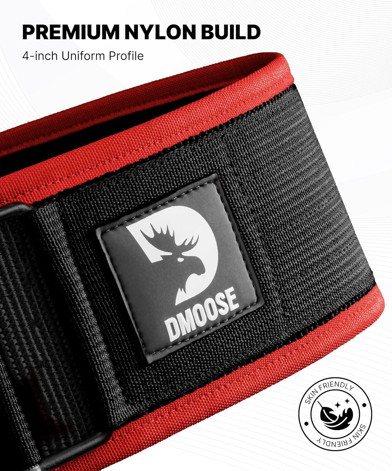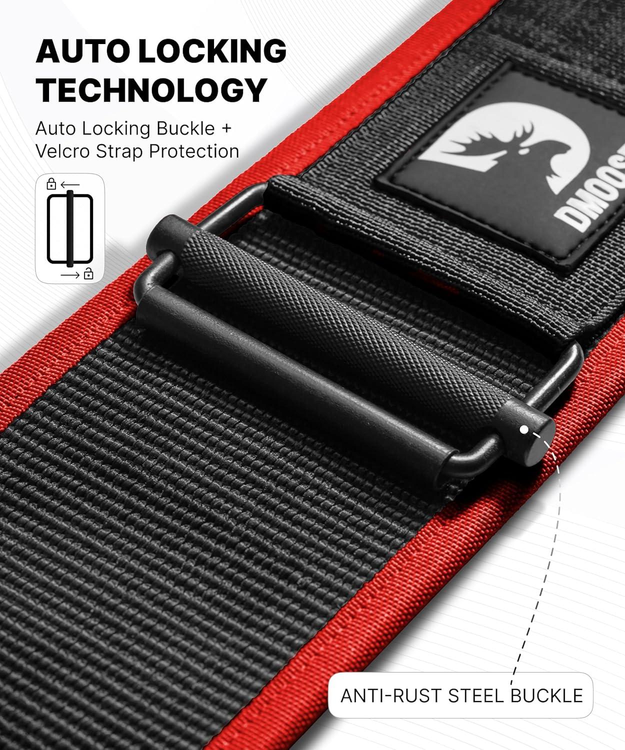 DMoose Weight Lifting Belt – Auto Locking Gym Belt for Olympic Training, WOD, Cross Training for Men and Women – 4″ Nylon Workout belt with Adjustable Buckle – Provides Lumbar Support and Stability(Black Red)