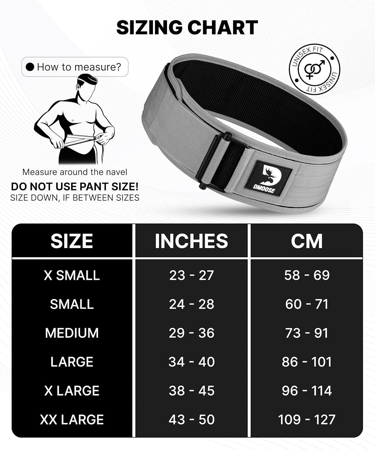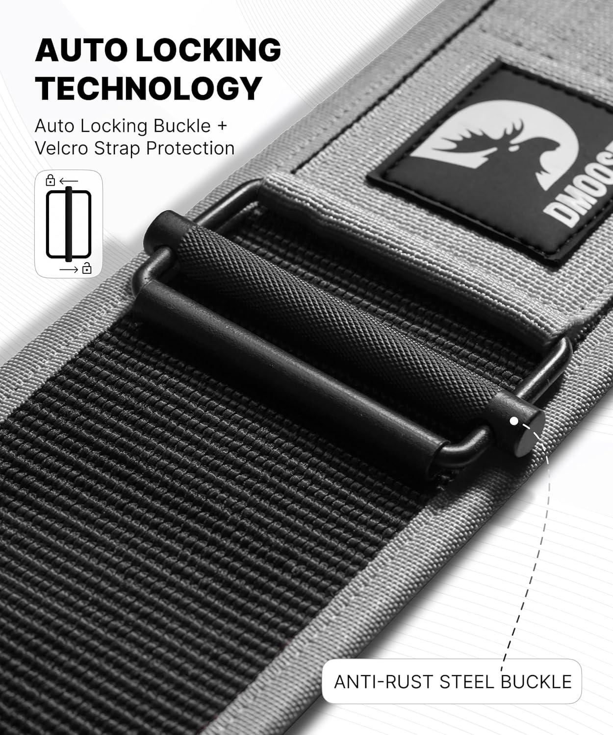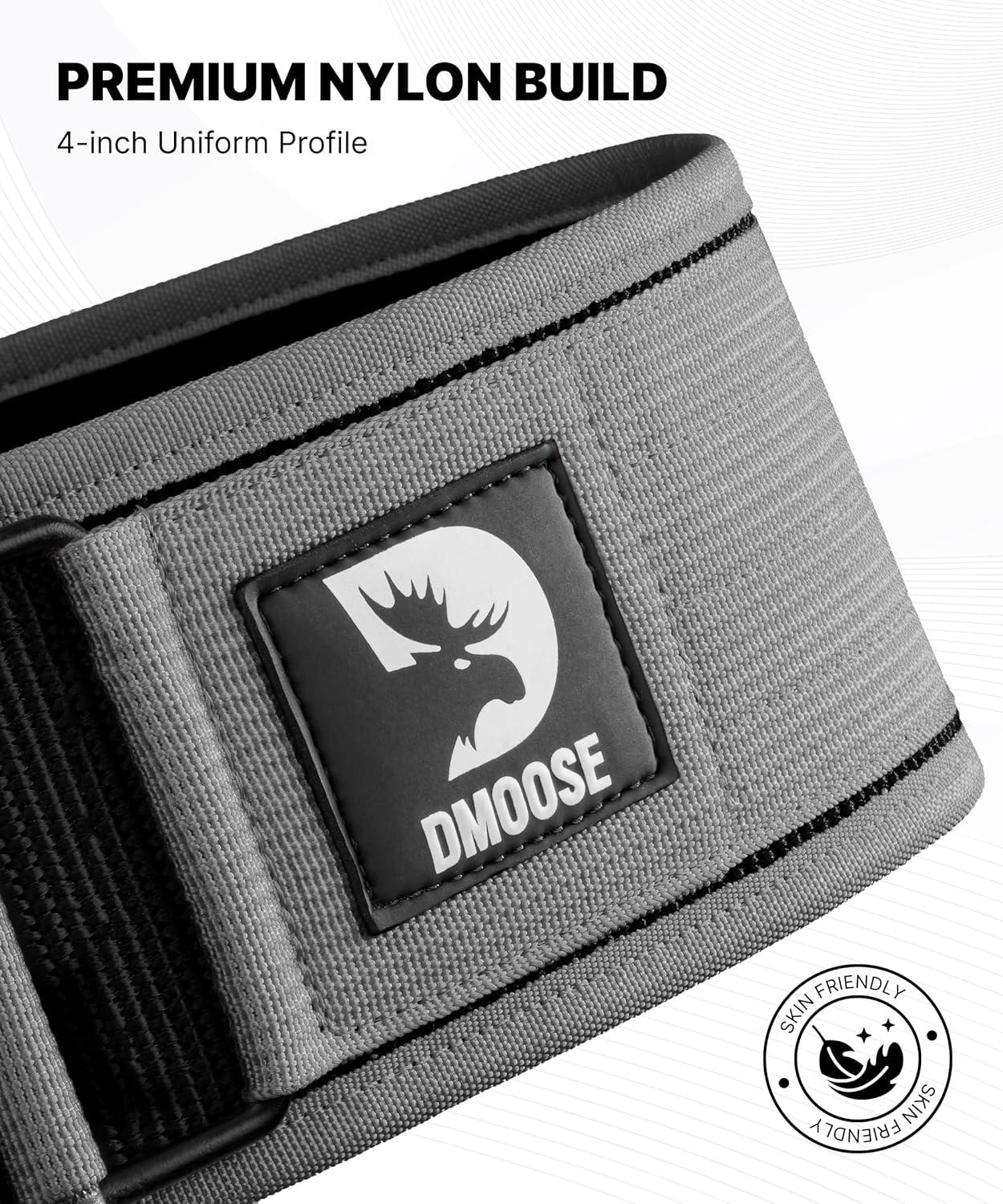 DMoose Weight Lifting Belt – Auto Locking Gym Belt for Olympic Training, WOD, Cross Training for Men and Women – 4″ Nylon Workout belt with Adjustable Buckle – Provides Lumbar Support and Stability(Grey)